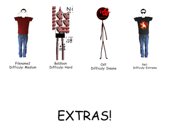 Fight famous Baldi's Basics characters like Filename2, Baldloon, Cell, Neil, Ishaan, Stalk, Blabi, Rob, and Glitched Foxo!
